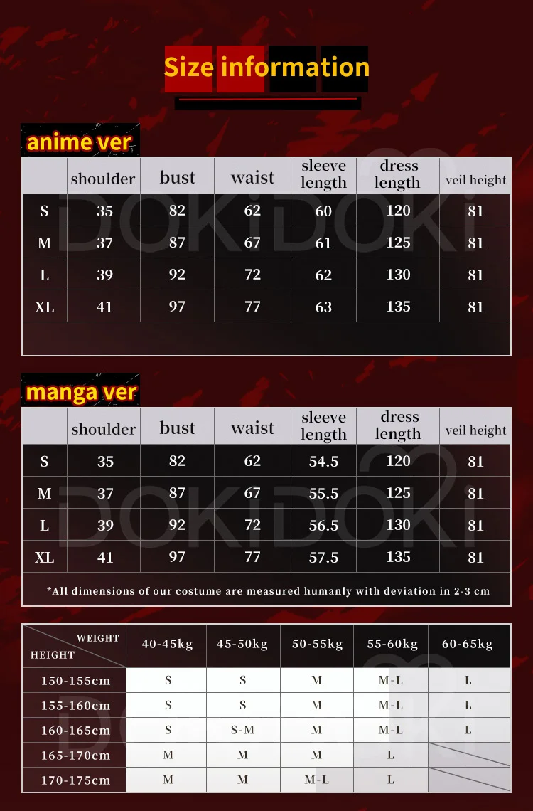 Please read the size chart carefully. (◕ˇ∀ˇ◕)Welcome contact us for help about size choosing with your height ,weight ,waist ,bust,hip measurement.