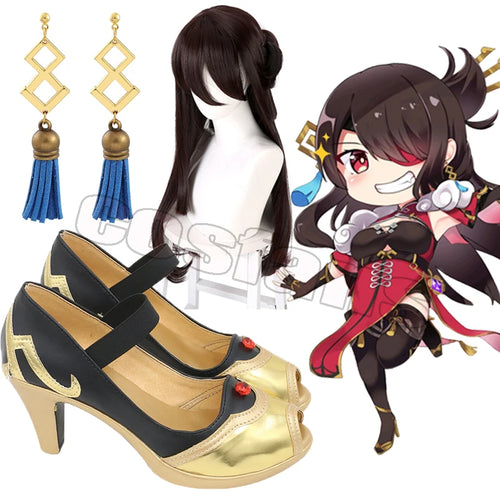 Genshin Impact Beidou Cosplay Boots Shoes Wigs Cosplay Anime Game Bei Dou Earrings Genshin Party Carnival Costume For Women