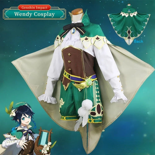 Genshin Impact Venti Cosplay Costume Uniform Wig Shoes Cosplay Anime Chinese Style Halloween Costumes For Women Game Wendi Windy