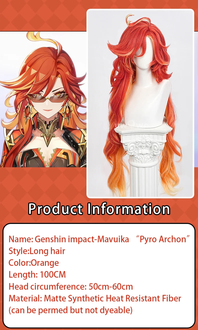 UWOWO Mavuika Wig Game Genshin Impact Mavuika “Pyro Archon” Cosplay Wig Orange Hair Long Hair Halloween Wig