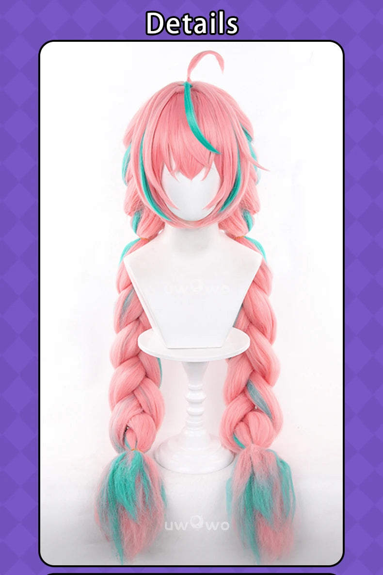 UWOWO Varesa Wig Game Genshin Impact Varesa Cosplay Wig With Ponytail Long Pink and Green Hair
