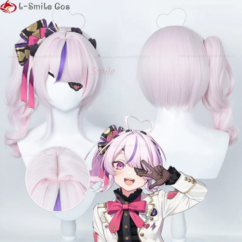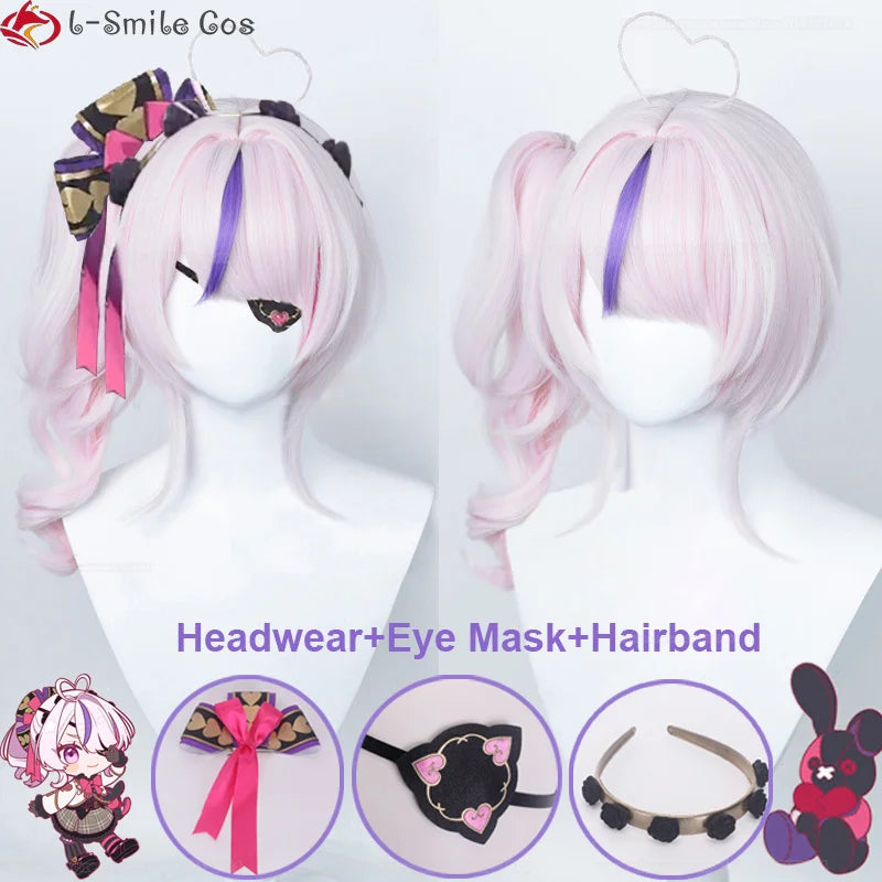 VTuber NIJISANJI lLUNA Maria Marionette Cosplay Wig 42cm Short Pink Ponytail Heat Resistant Synthetic Hair Party Wigs + Wig Cap