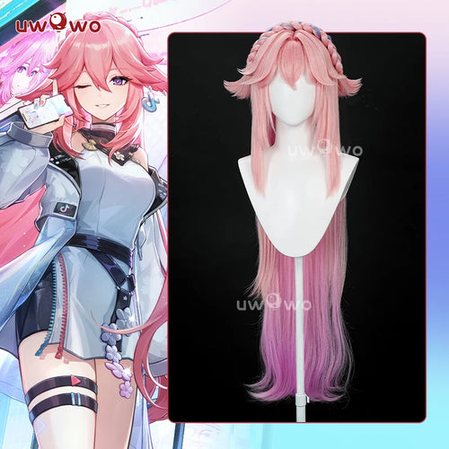UWOWO Yae Miko Cosplay Wig Genshin Impact Fanart Yae Miko Illustration Hair 100cm Pink Long Hair Halloween Cosplay Wig
