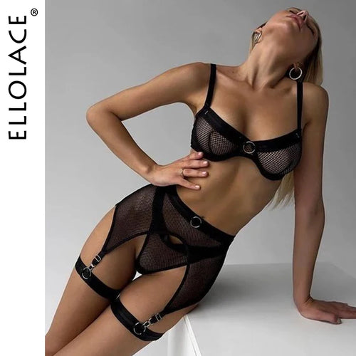 Ellolace Sensual Lingerie Women's Underwear Set Lace Delicate Erotic Bilizna Brief Sets Garters Transparent Seamless Sexy Outfit