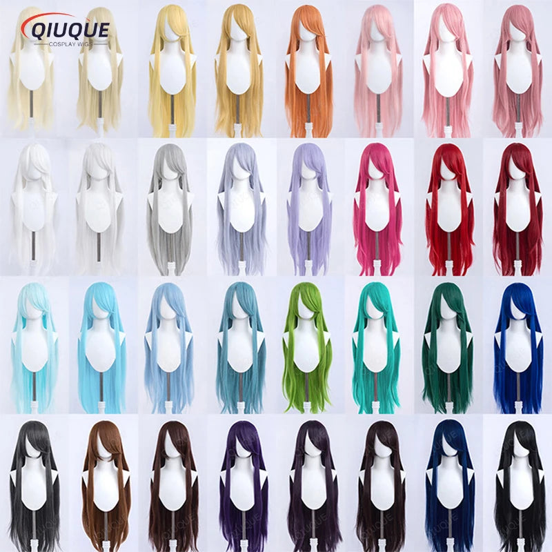 73 Colors 100cm Long Straight Cosplay Wig Anime Compatible Universal Omopinenet Heat Resistant Synthetic Hair Wigs + Wig Cap