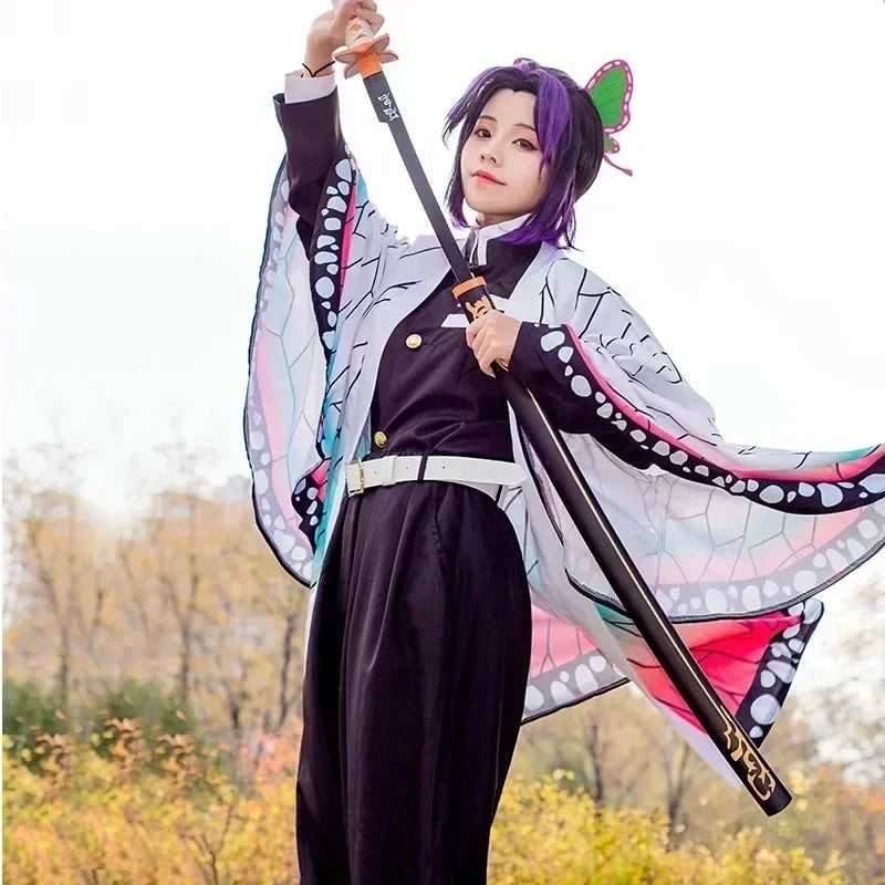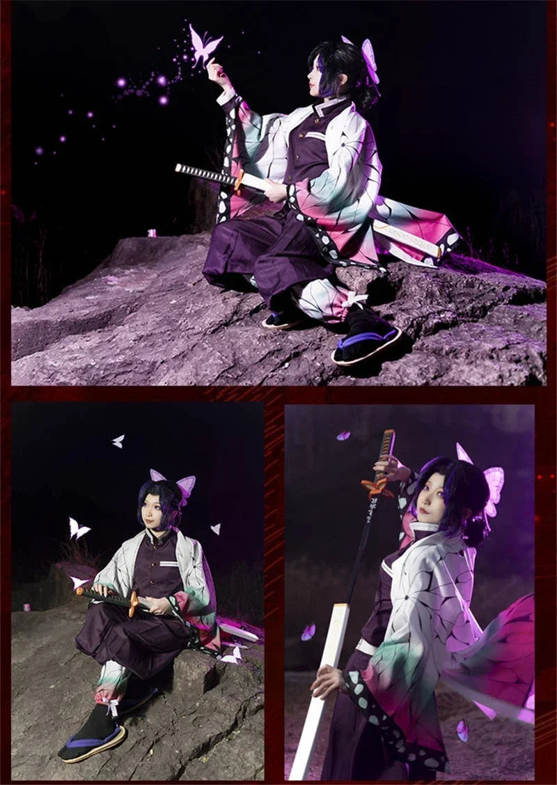 Anime Demon Slayer Kochou Shinobu Cosplay Costume Kimetsu No Yaiba Kochou Uniforms Wigs Hairs Halloween For Kids Adult Cos Party