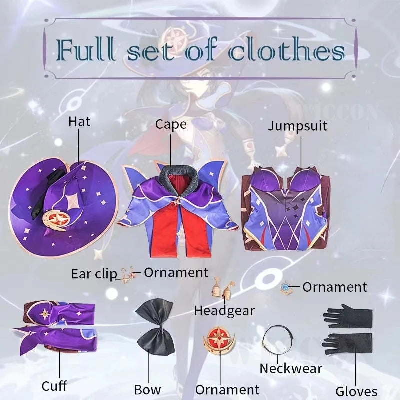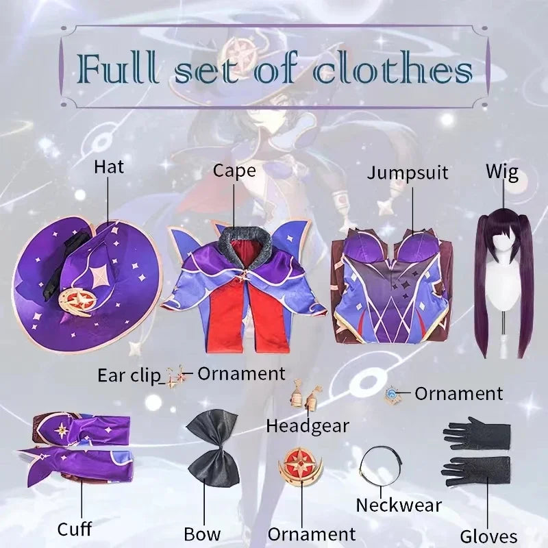 Anime Game Genshin Impact Mona Cosplay Costumes Jumpsuit Halloween Costume for Women Carnival Party Sexy Uniform Wig Clothing