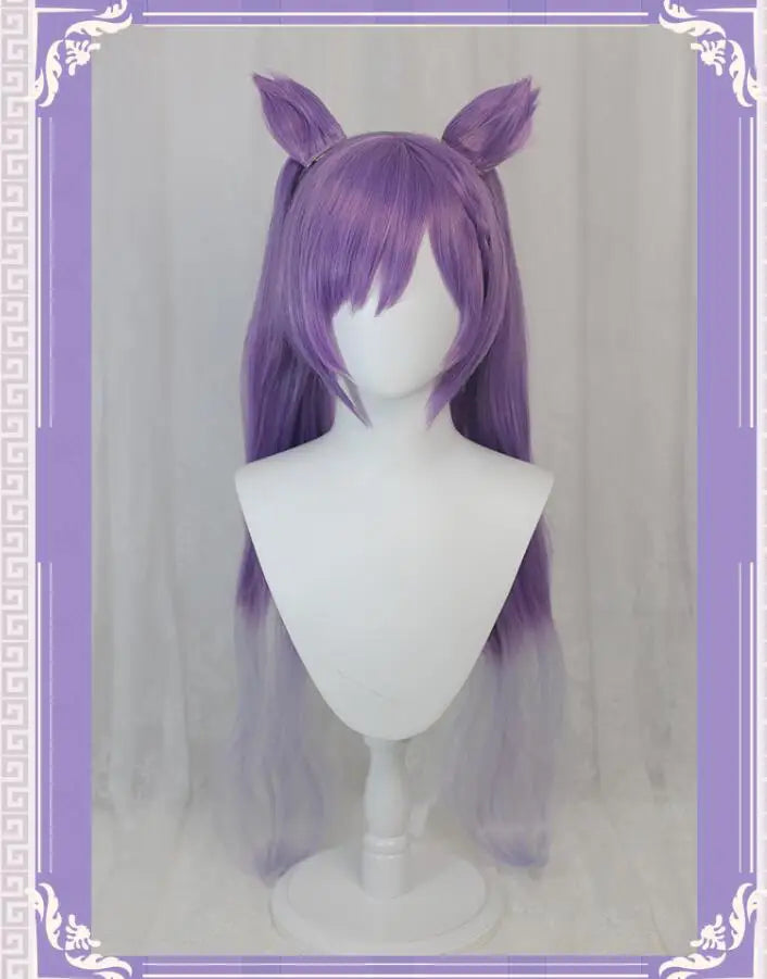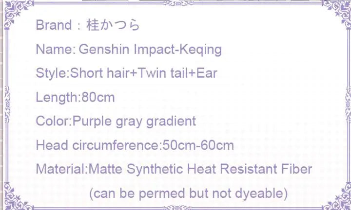Uwowo Game Genshin Impact Keqing Driving Thunder Cosplay Wig Yuheng of the Liyue Qixing 80cm Purple Gray Gradient Twin tail Hair