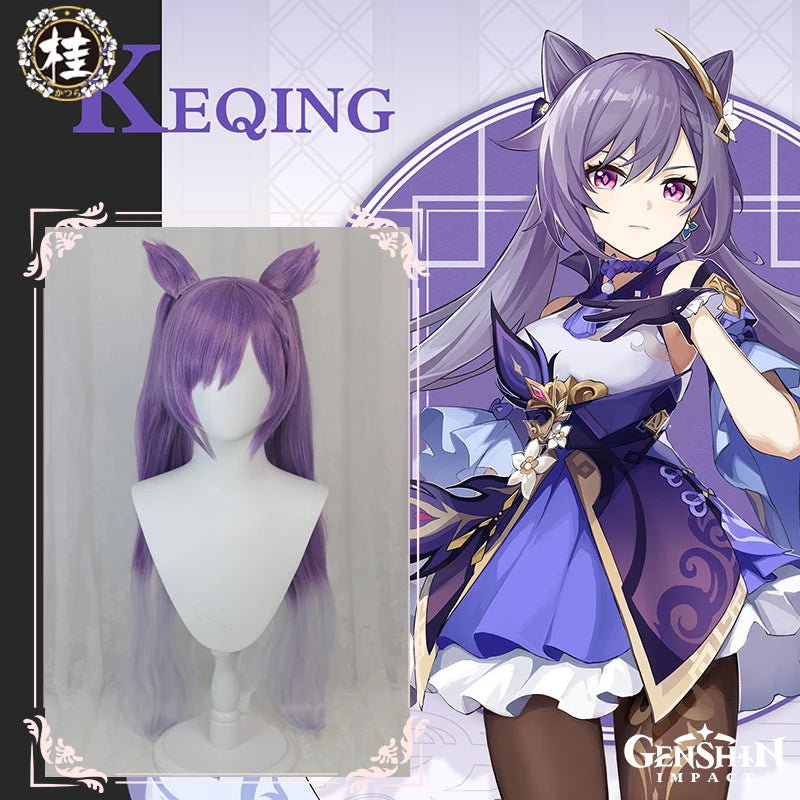IN STOCK UWOWO Game Genshin Impact Keqing Cosplay Wig Driving Thunder Yuheng of the Liyue Qixing 80cm Purple Gray Gradient Hair