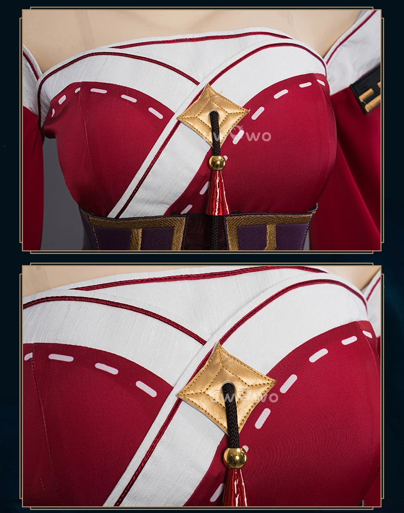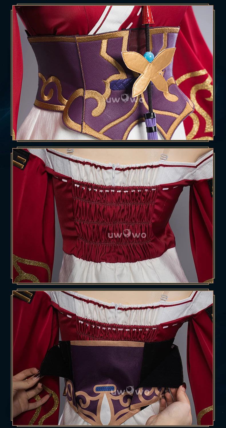 Sleeves, leather dress and the top are sewed togethr in one piece. It might not be easy to lift your arms. We would recommend to wear extra shorts when wearing this costume if you feel short. The elastics are at the waist and back areas with invisible zipper. It would be better to have someone zip for you.